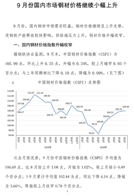 9月份国内市场钢材价格继续小幅上升