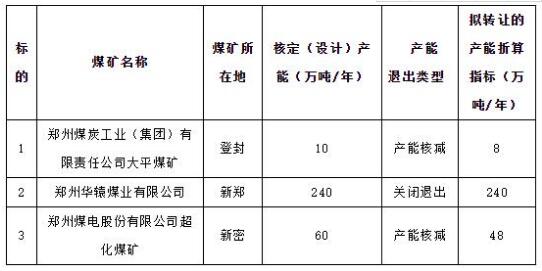 河南省3家煤矿转让296万吨/年煤炭产能指标
