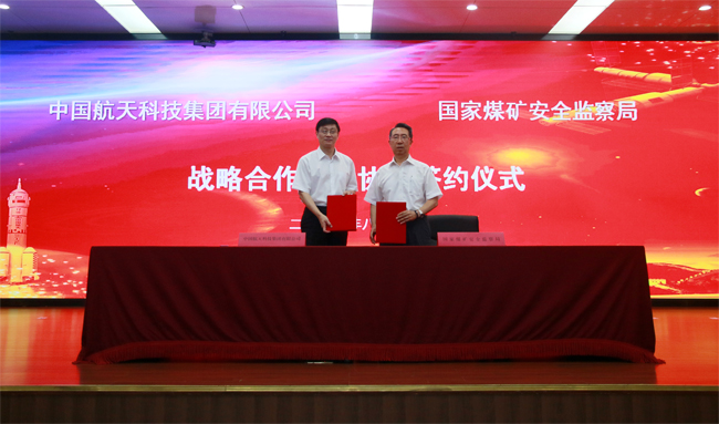 8月14日,国家煤矿安监局与中国航天科技集团有限公司在京签订战略合作框架协议。应急管理部副部长、国家煤矿安监局局长黄玉治,中国航天科技集团有限公司董事长吴燕生出席签约仪式并座谈讲话,代表双方签订战略合作框架协议。国家煤矿安监局副局长宋元明参加签约仪式。